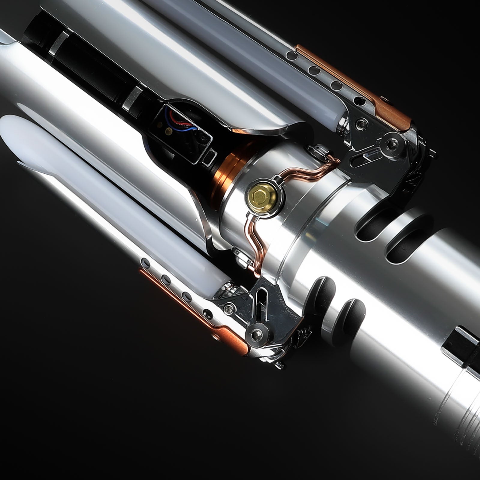 The hilt serves as the foundation of our lightsabers, meticulously crafted from aluminium alloy for unparalleled strength and durability. Its modular design allows for effortless customisation, ensuring that each saber reflects the unique personality of its wielder.