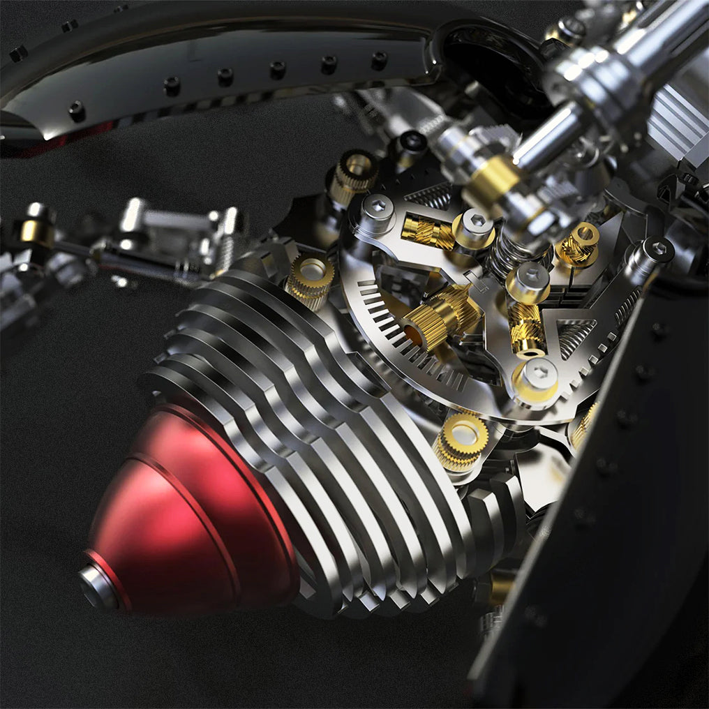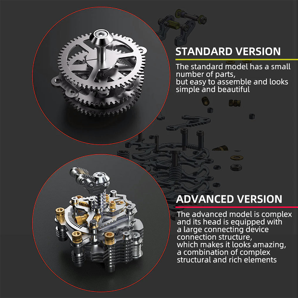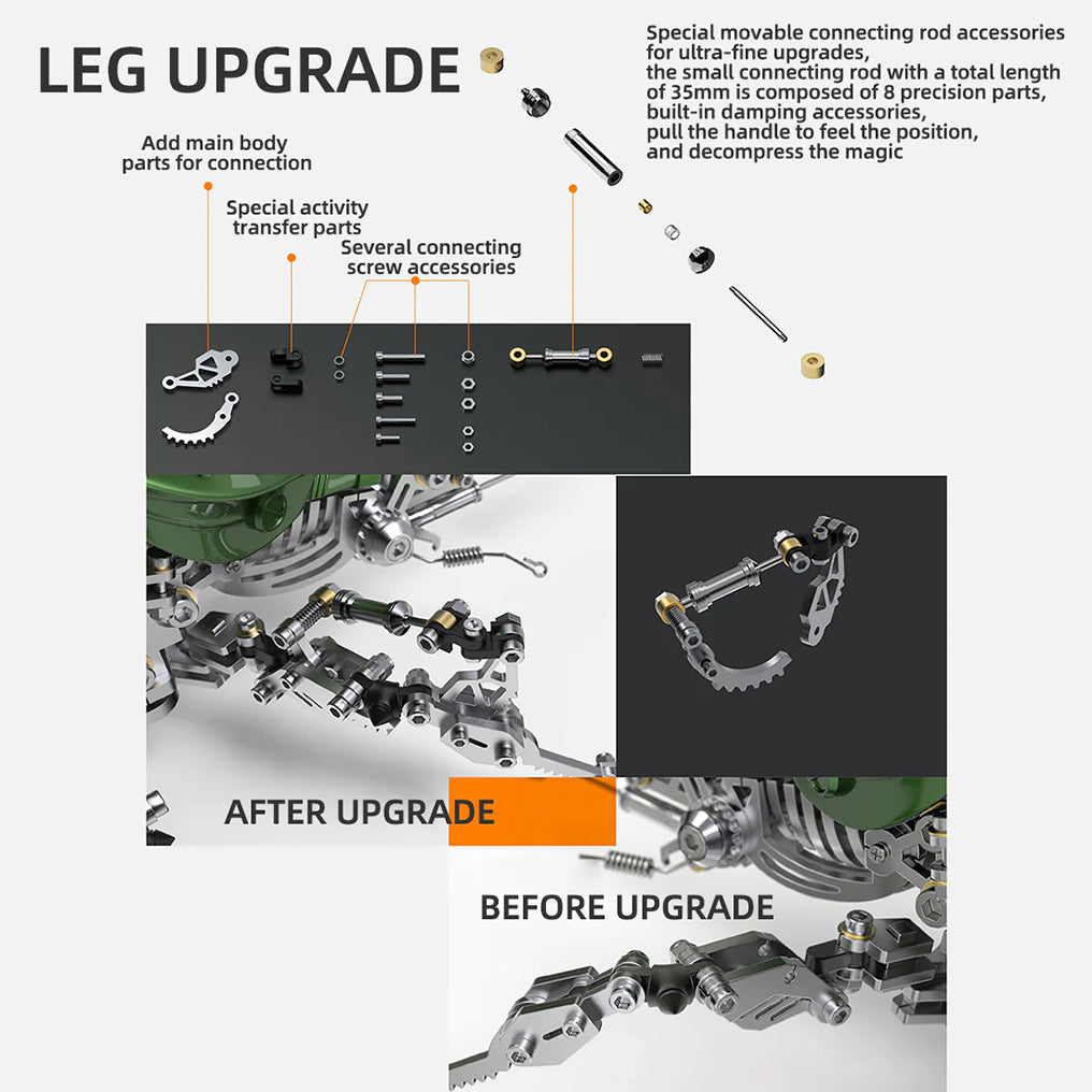 This kit includes all the necessary materials such as food-grade stainless steel, aluminum, and copper that are precisely cut to ensure safety during assembly. The brushed metal provides a pleasant tactile experience and offers both durability and aesthetic appeal, setting it apart from traditional plastic or wooden models. These high-quality materials come in environmentally friendly packaging and are suitable for adults and children over 10 years old. The mechanical core includes striking details such as the hydraulic jaw, abdominal components, openable wings, and hydraulic leg connections, making this Mechanical Dynastes resemble a fantastical creature from a retro world.