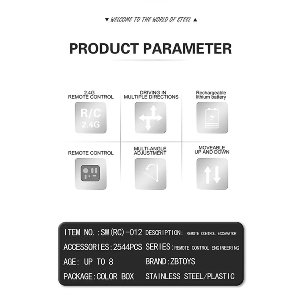 - Product description: the product a total of 2254pcs, with detailed English instructions about the assembly steps, clear logic, assembly worry-free. Product configuration 1 3.7V 300 HAM lithium battery and charging cable, you will be able to repeatedly use and play excavator.