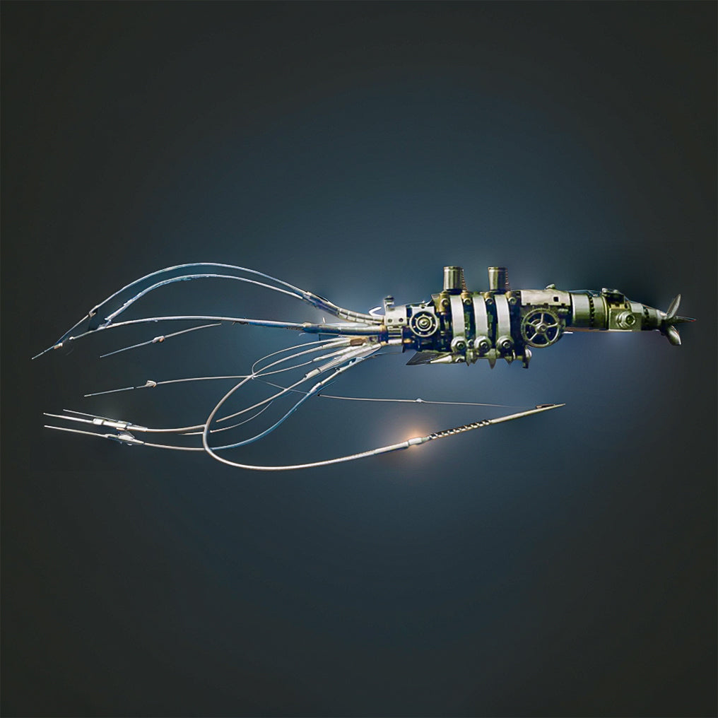 - Crafted from premium stainless steel and other materials, this product allows for a unique and intricate assembly process using the included screws and diagram. Assembly results in a stunning mechanical squid design that is truly a sight to behold. When displayed on the base, it creates a striking visual that is sure to captivate.